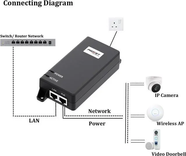 Gigabit SpeedThis PoE injector supports Network speed of 10/100/1000Mbps, ensuring fast and reliable stable Network connectivity for your PoE device always.
