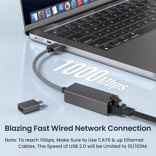 Network Connection: Effortlessly connect your USB-C device to a high-speed wired network with our USB-C to Gigabit Ethernet adapter ensuring you enjoy lightning-fast internet speeds of up to 1 Gbps for seamless streaming gaming and online work.
