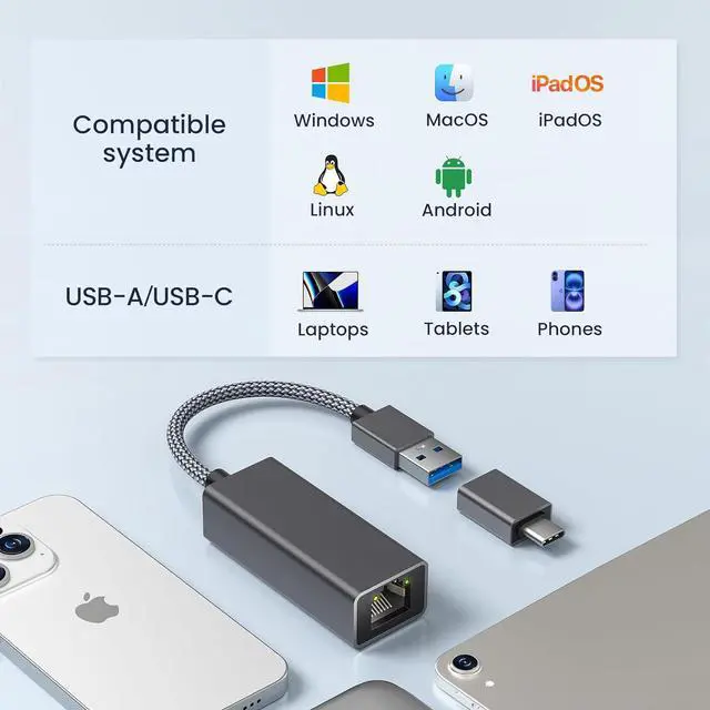Multi-Port Universal: RUXELY USB to Ethernet Adapter with USB-C to USB A Adapter compatible with both USB and USB-C port computers ensuring you always have the right connection.