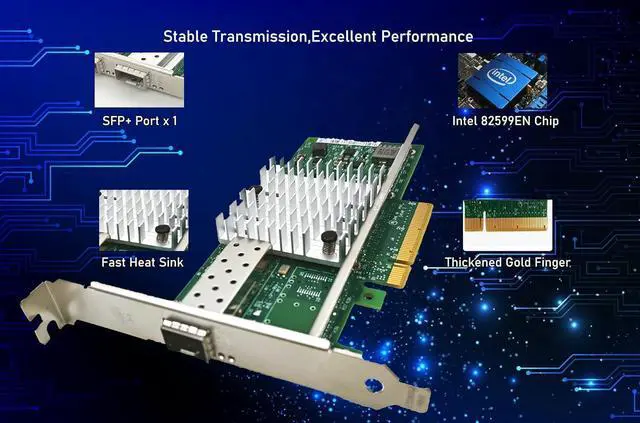 Faster Transmission: Equipped with Intel X520 82599EN Ethernet Controller it supports Single Root I/O virtualization improves servers stability and provides up to 10Gbps transmission speed effectively prevent packet loss so that you will enjoy a high-speed networks.