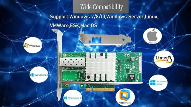 Support OS: Windows 7/8/10/11/Visa Windows Server 2008/2012/2016/2019 Linux Centos/RHEL 6/7/8 Ubuntu 16/18/19/20 Debian 9/10/11 FreeBSD 10/11/12 Vmware ESX/Esxi 6/7 SLSE 11/12 etc. Low Profile Bracket and standard Bracket are included which come with 10gbe Network card. We provide 30-day return or refund and 3-year warranty service for any quality issue and lifetime technology support.