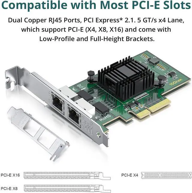 Ultra Fast Speed Dual RJ-45 10/100/1000Mbps let you connect to network cable and upgrade your ethernet speed to gigabit easilyStable Performance Equipped with original Intel I350AM2 controller chip which built for high-performance computingComprehensive System Support Supports Windows Server 2003/2008/2012 Windows7/8/Vista/XP Linux* Stable Kernel version 3. x 2.6 x Red Hat Enterprise Linux* 5 6 SUSE Linux Enterprise Server* 10 11 FreeBSD 9* VMware ESX/ESXi*Low-Profile and Full-Height Brackets Low profile and standard profile bracket inside works with both standard and mini size computer case/serverIndustry Leading Support Your purchase comes with Ipolex's unwavering commitment to customer satisfaction featuring a 30-day Return policy a 3-year Warranty protecting against defects and malfunctions and Technical Support for continuous expert assistance ensuring your peace of mind and the long-term performance of your network card.