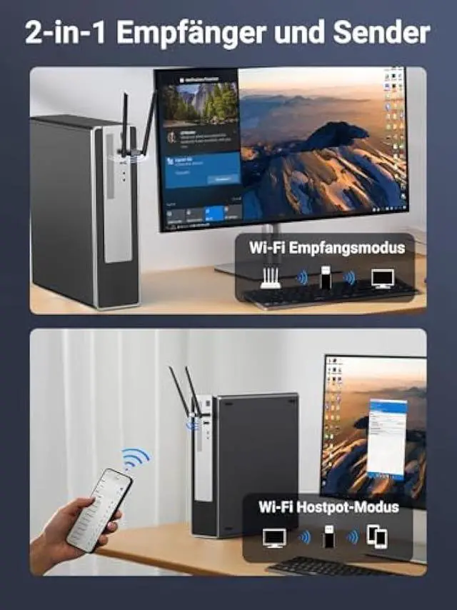 Use As WiFi Hotspot: UGREEN USB wireless network adapter supports Station Mode and Soft AP mode at the same time. In Soft AP mode, you can convert your wired computer into a WiFi hotspot, so that more devices can connect to WiFi.