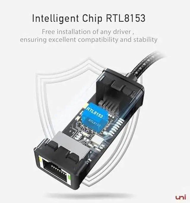 uni's unique designThe built-in intelligent chip RTL8153 offers high-speed transmission. The USB connector fits snugly into the port ensuring stable signal transport. Nylon braided cable adds up the durability without compromising on its flexibility for easy storage. LED indicator informs you of the working status and premium aluminum case for better heat dissipation.