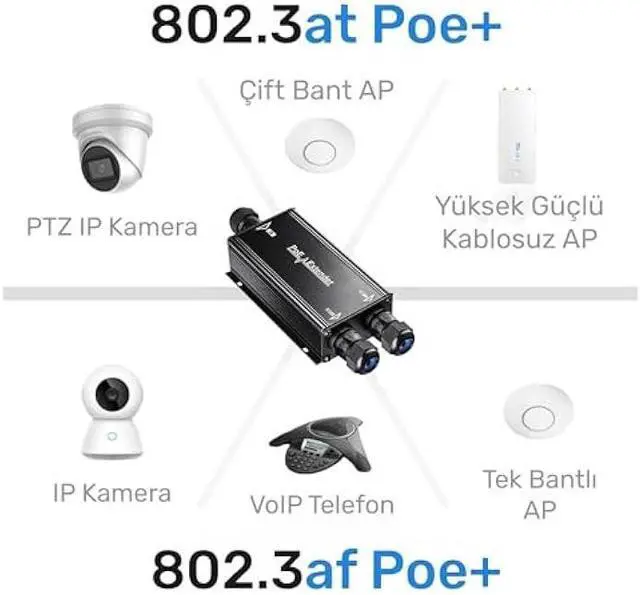 2 Channel gigabit outdoor PoE extender, easy to extend PoE Power to two PoE devices, such as Wireless APs, Base Stations, Network Cameras or other PoE devices through an exterior network data cable.