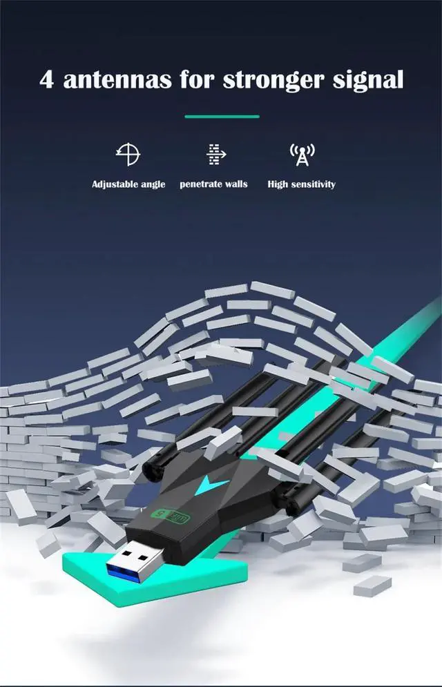 2026 NEW WiFi USB Adapter Dual Band 2.4G+5Ghz 1300Mbps 600Mbps Wi-Fi Dongle USB3.0 High-Speed Wireless Card Receiver For PC/Laptop Win