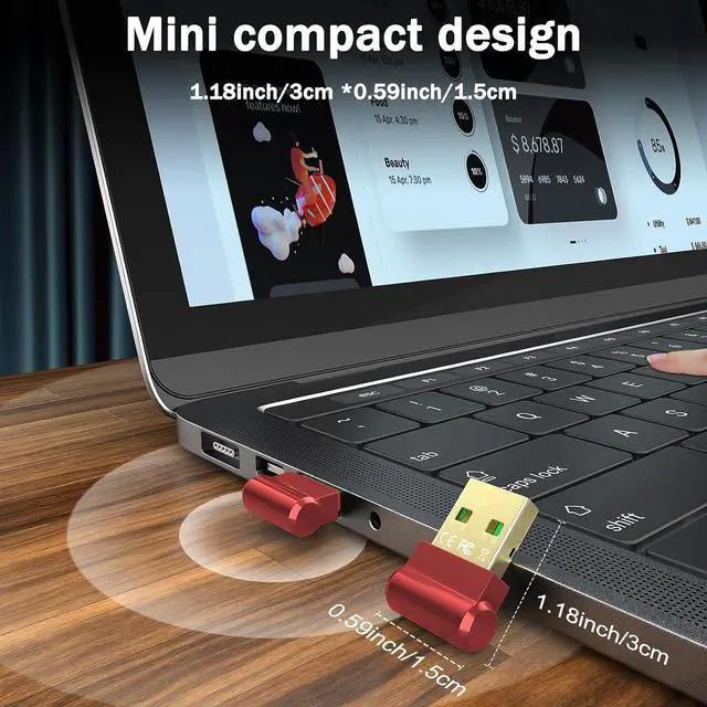 Ultra-Small Size: The stylish and compact design makes the upgraded Bluetooth receiver perfect for placing on a laptop or PC without even noticing it. You can easily carry it on your laptop without blocking the USB ports next to it.