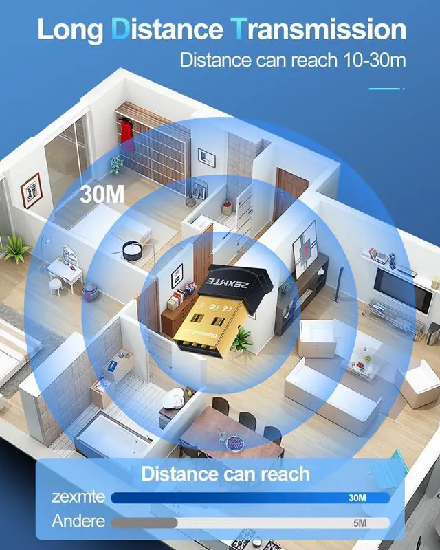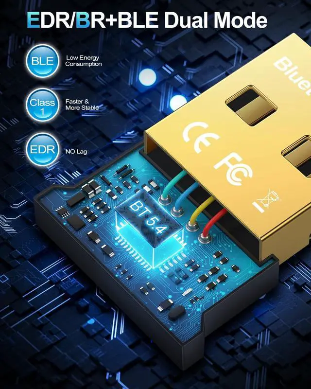 ?? Latest Technology----Equipped with Bluetooth 5.4 chipset supporting dual modes (BR/EDR + BLE). Low latency technology reduces power consumption enhances anti-interference and ensures stable performance in the 2.4 GHz band. Backward compatible with Bluetooth V 5.0 4.2 LE 4.0 and 2.1?? Faster & Farther----Enhanced Data Rate (EDR) technology boosts transmission speed for lag-free wireless data transfer between your computer and Bluetooth devices. Enjoy seamless music file transfers and entertainment. Transmission distance reaches up to 30m/98ft in open areas?? Plug-and-Play----Simply plug it into your device for immediate use without installing drivers or software on Windows 11/10/ 8.1.