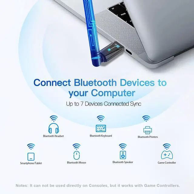 Devices Connected SYNC: Krisnorey USB Bluetooth 5.4 adapter for PC supports up to 7 different types of Bluetooth devices to be paired and connected at the same time without interfering with each other including Bluetooth Headset Speaker Keyboard Mouse Game Controller Printer PCs Laptop smartphone and more. (Excluding 2.4G wireless devices like 2.4G wireless keyboard mice).