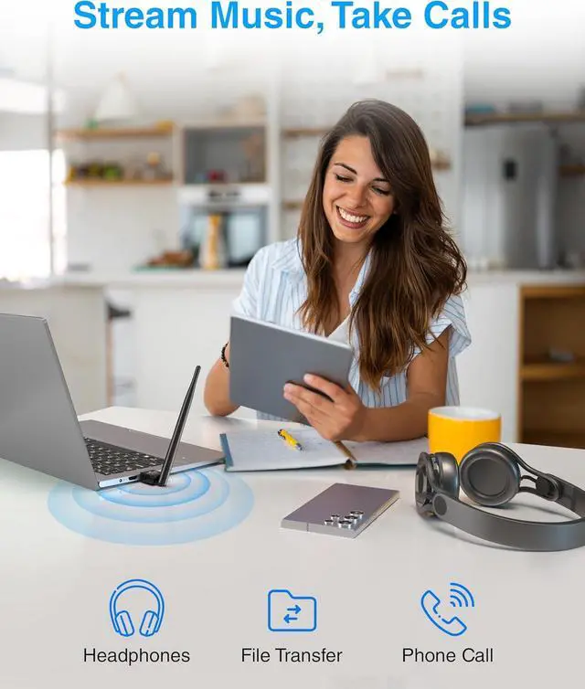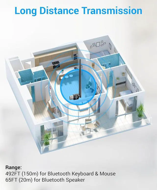 LONG RANGE TRANSMISSION: Enjoy extended wireless range of up to 492 feet (150 meters) for keyboard and mouse connections and 65 feet (20 meters) for Bluetooth speakers and offers fast data transfer. Kinivo Bluetooth transmitter provides Bluetooth specification v 5.3 with backward compatibility and low energy (BLE) technology?