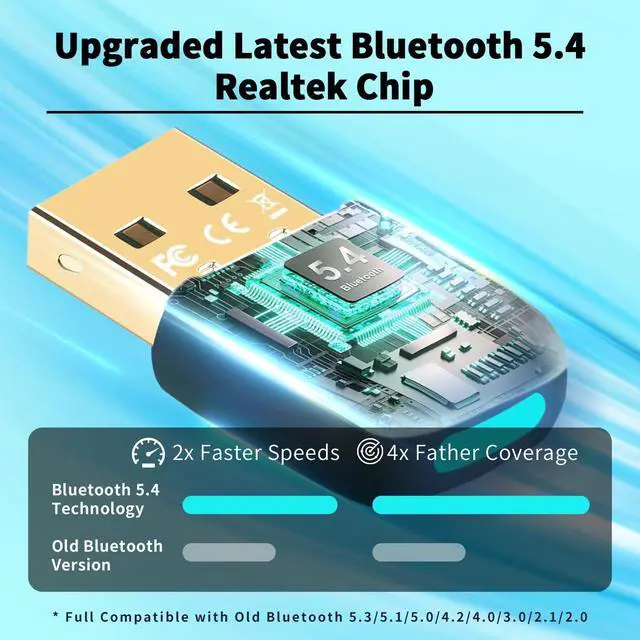 Bluetooth 5.4 Technology: - The BT542 Bluetooth adapter Applies the latest Bluetooth 5.4 technology that backwards compatible with old Bluetooth version V 5.3 / 5.1 / 5.04. 2/ 4.0 / 3.0 / 2.1 / 2.0 / 1.1. Supports Dual Modes BR/EDR and Low Energy Controller. Quick response and better anti-interference say goodbye to delay and lag. The anti-interference ability has been increased. Enjoy wireless freely Operate with flexibility and ease.