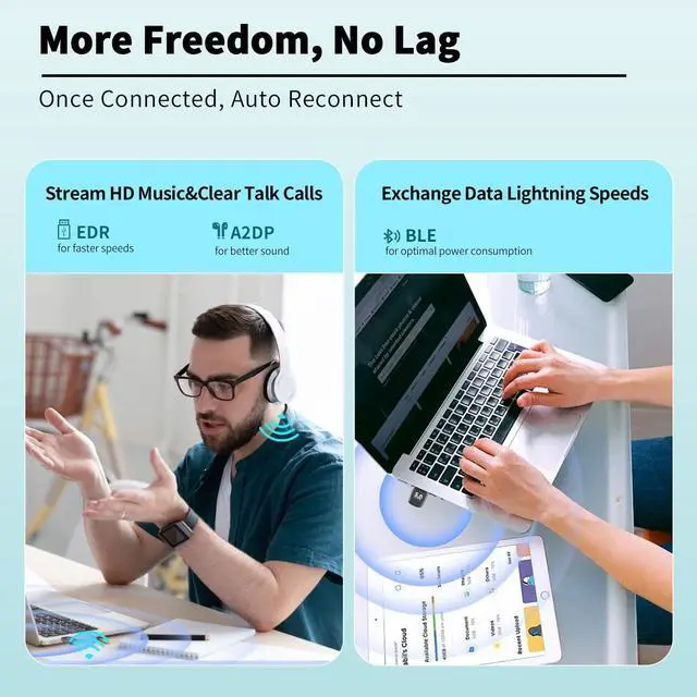 Plug & Play: This Bluetooth adapter is Plug & Play for Win 8.1 /10/11 just plug the USB wireless adapter into your computer you can use it directly. Not limited by network and location. You can use the Bluetooth function anytime and anywhere. Greatly improve your work efficiency and save your time. (Please disabled all the existing Bluetooth function firstly. Not applicable to Mac OS TV Car Radio or Microsoft)More Stable Faster
