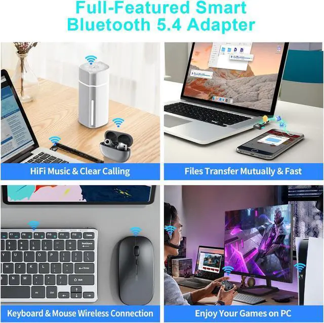 Bluetooth 5.4 Adapter: This BT544 Bluetooth USB Dongle turns Non-Bluetooth PC or laptop or Desktop or that the Bluetooth function is damaged into new generation Bluetooth 5.4 -capable function realizes Bluetooth wireless transmission with Bluetooth Headphones Headset Speaker mouse keyboard printer any game controller etc. Latest Reaktek