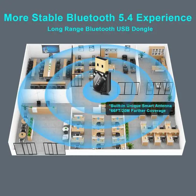 Stable Fast: Equipped with the latest Bluetooth 5.4 and high-performance built-in antenna providing a stronger and more stable Bluetooth connection with extended coverage even at longer distances. In open space the maximum transmission rate can reach 3 Mbps and the transmission distance can reach 66 feet (20 meters) (Note: the effective range is affected by physical barriers and radio interference).