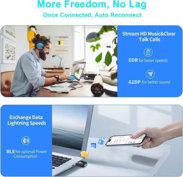 Play & Multiple Connection: Plug and play for Win 8.1 10 and 11 also Supports Win7 (Driver is required for Win7 and it could be downloaded from website). Supports wireless communication with various Bluetooth-enabled devices including PCs laptops printers phones headsets headphones speakers keyboards mouse game controllers and more. Up to 7 different types of devices sync connected without interfering.