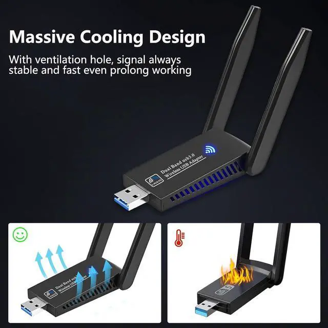 Heat Dissipation: With USB 3.0 interface brings you much better connection and it's 10 times faster than USB 2.0. The cooling vents of the wifi adapter enables a long operating time and works much more stable than other adapters without heat dissipation. Wide Compatibility &Easy to