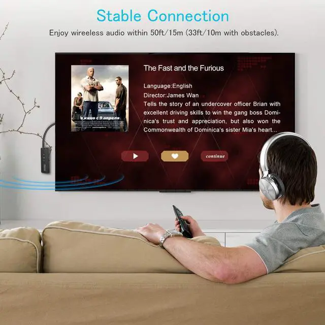Bluetooth 5.3 Transmitter ReceiverThe Bluetooth transmitter transmits audio wirelessly to bluetooth headphones / speakers. Bluetooth Receiver turn the traditional speaker into bluetooth speaker. Works with device with 3.5 mm interface Bluetooth 5.3 is supported. When connecting keep the product close to the paired device for better connection when used on PC use USB charging data. In TX mode confirm that headset or speaker is in the status where Bluetooth can search for connection. Latest Bluetooth Transmitter When the USB charging data cable is plugged into PC it can be used as a transmitter to transmit audio enabling the computer to have bluetooth function.