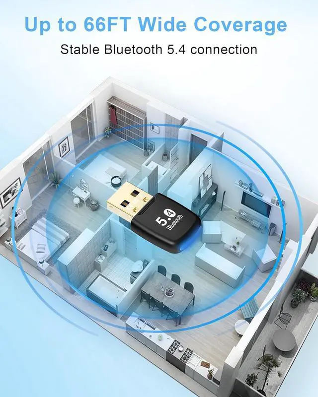 Latest Bluetooth Dongle 5.4 TechnologyThe bluetooth adapter for pc adopts the latest Bluetooth 5.4 +EDR technology providing faster data transfer speeds (3 Mbps) and lower power consumption. The bluetooth usb is backward compatible with Bluetooth 2.0 / 3.0 / 4.0 / 5.0 / 5.1 / 5.3 devices ensuring stability and anti-interference capability. Multiple Device ConnectivityThe usb bluetooth adapter for pc can simultaneously connect up to 7 Bluetooth devices such as Bluetooth headsets speakers keyboards mice phones and game controllers providing a seamless multi-device connection experience. Plug and PlayOn Windows 8.1 /10/11 systems the bluetooth usb adapter pc requires no driver installation offering plug-and-play functionality for quick and easy Bluetooth connections.