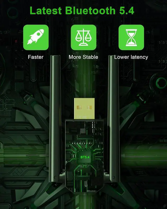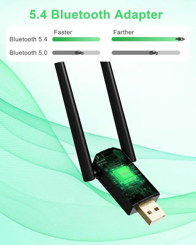 Lightning Fast Transmission Enjoy Wireless ExperienceThis Bluetooth adapter features the latest Bluetooth 5.4 technology with a data transfer speed of up to 3 Mbit/s ensuring a smooth audio and video experience without delays or interruptions. Extended Range Connect FreelyThanks to its exceptional design this Bluetooth adapter can achieve a transmission distance of up to 150 meters in open spaces allowing you to move freely at home or in the office without worrying about signal loss. Multi-Device Connection Boost EfficiencyThis Bluetooth adapter supports simultaneous connections with up to 7 Bluetooth devices easily managing headphones mice keyboards or phones perfectly catering to your work and entertainment needs.