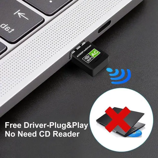 Installation: wifi usb adapter for pc is built-in pre-installed drivers plug it into the USB port of your PC the driver will be read automatically click once to run and it will complete the installation automatically. No need CD or download the driver online. Very convenient and fastDual Band WiFi Adapter - Upgrade your Wi-Fi to speeds of up to 600Mbps with 433Mbps at 5GHz and 150Mbps at 2.4GH z. Perfect for movies HD video streaming online gaming and video chatting on your laptop or desktop. Mini Design - Wireless wifi adapter is designed to be lightweight and mini in size to allow you to take it anywhere. a tiny way to get speedy next generation fast connection speed which can help you connect even when signals are weak. Wide Compatibility - Wireless network adapter works seamlessly with desktop PCs and laptops running Windows 11 10 8.1 8 7 XP.