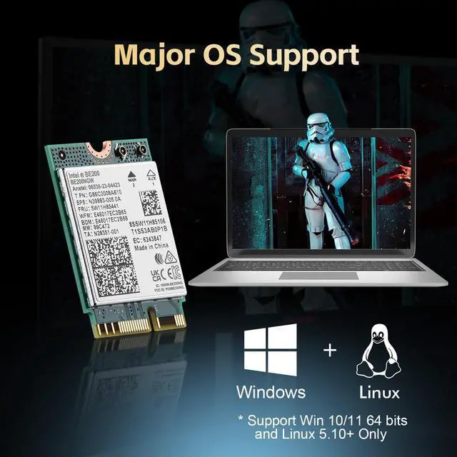 Can be widely used for wireless expansion/upgrade of laptop PCs industrial controllers NAS etc that have M. 2 interface slots. Broader Compatibility WPA3 advanced security encryption protect your wifi network more securely. It is the ultimate solution for computer users looking to enhance their wireless performance and access high-speed Wi-Fi networks. **Search BE200NGW from Intel website for install drivers.
