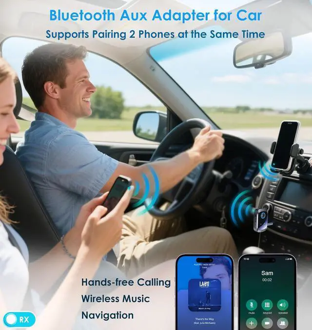 CAR AUDIO UPGRADE: Plug this Bluetooth Car Adapter AUX into your cars 3.5 mm jack instantly convert car radios to wireless music & hands-free calling. Built-in HD microphone with noise cancellation ensures crystal-clear calls even on noisy highways. Stream music podcasts or GPS navigation directly through car speakers!
