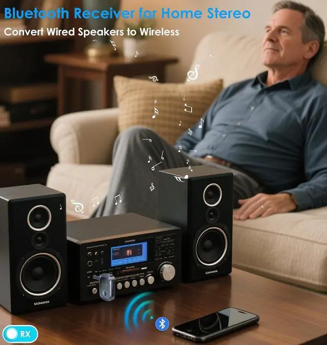 BLUETOOTH 5.4 AUDIO UPGRADED: Bluetooth 5.4 with Low Latency & Adaptive Tech delivers CD-quality audio up to 33 feet away. 3.5 mm Bluetooth adapter is perfect for lip-sync-free movies intense gaming or calls. Adaptive frequency hopping blocks interference from Wi-Fi or microwaves.