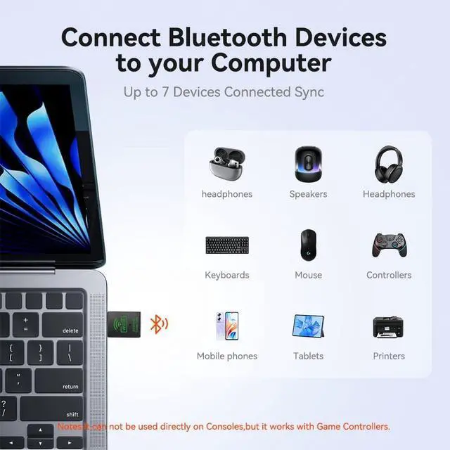 SUPPORT: Connect up to 7 Bluetooth devices simultaneously including keyboards mice headphones speakers and controllersDUAL