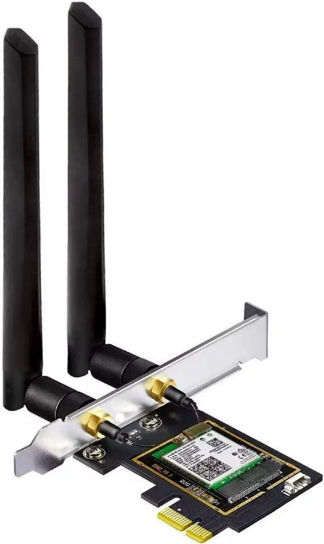 Ultrafast WiFi 6 & WiFi 6E Support 6GHzThe PCIE WiFi 6E Card Built-in AX210 chipset provides the latest 802.11 ax standard technology. Target Wake Time delivers from 80MHz to 160MHz higher peak data rates boosts your overall speeds up to 5400 Mbps(574Mbps @ 2.4GH z + 2400Mbps @5GHz +2400Mbps @6GHz) and up to 4X capacity improvement in dense or congested environments comparing to 802.11 ac. Heartily enjoy 8K movies large file transfer and smart home devices with fewer dropped connections. The ALL-New 6GHz BandThe ALL-New 6GHz solves WiFi spectrum shortage by providing contiguous spectrum blocks including 7×160MHz channels 14×80MHz which refuses signal congestion in high demand environments.