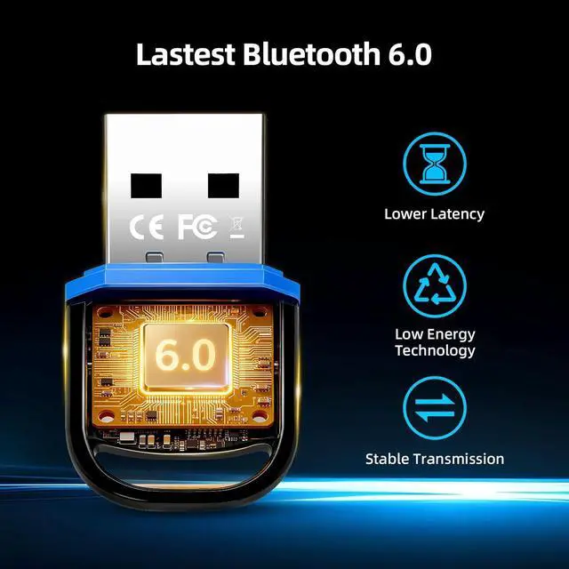 Technology: Experience superior wireless connectivity with our upgraded Bluetooth 6.0 USB adapter. It offers enhanced range (up to 65 ft in open areas) faster data transfer speeds (2-3x faster than BT 5.0 ) and significantly lower power consumption for extended device battery life. Enjoy crystal-clear audio and lag-free control. It is also backward compatible with old Bluetooth 5.4 / 5.3 / 4.0 etc. Plug and Play with
