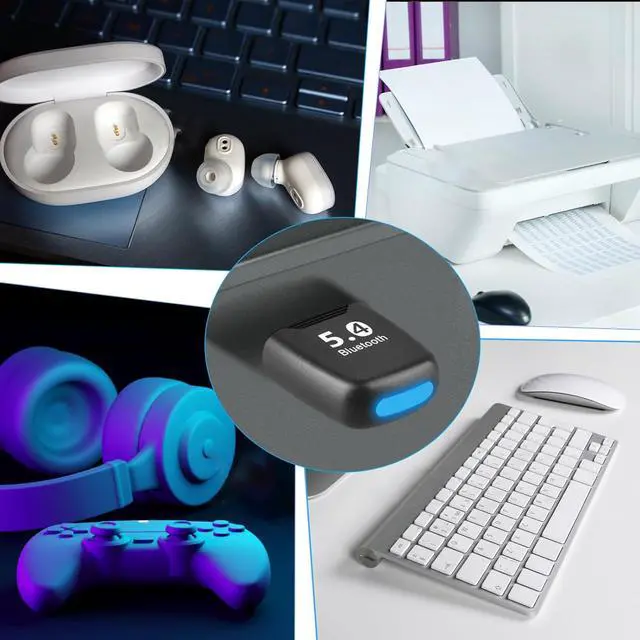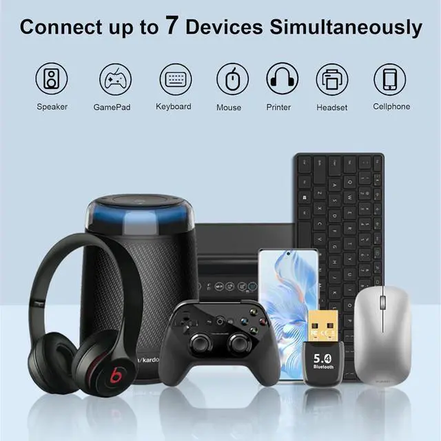 Bluetooth 5.4 version: Built-in Bluetooth 5.4 technology this bluetooth adapter perfectly connects with wireless devices with low power consumption to provide smooth and stable connection to provide you a better user experience. It's compatible with Bluetooth 5.3 5.2 5.1 and 5.0. 7 Devices Pairing at the