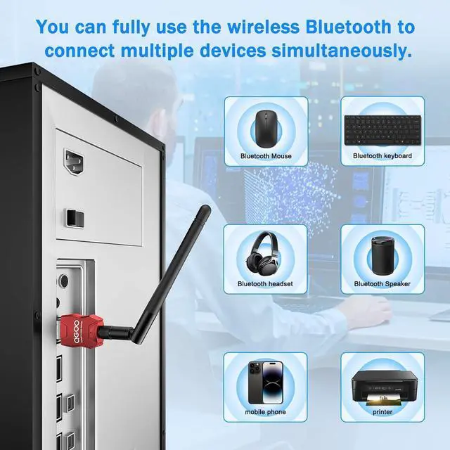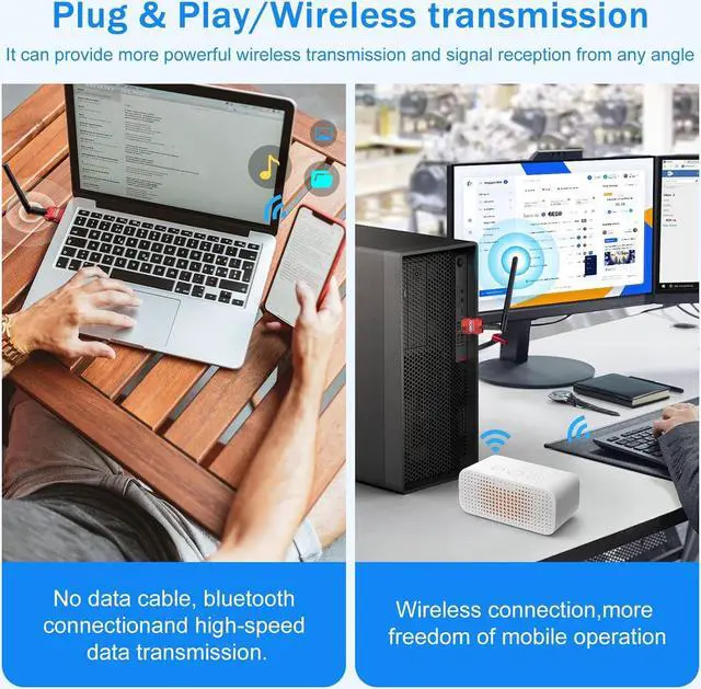 Plug & Play Simply plug the product into your computer you can use it directly It is not limited by the network and location greatly improving your efficiency saving your time so that you can use Bluetooth function at any timeClass 1 Radio Technology The Bluetooth 5.3 dongle uses Class 1 radio technology and the transmission range in the open area can reach 328ft/100m (the maximum range can be up to 328ft/100m in open areas with no obstacles). You can enjoy the joy of wireless around the house.