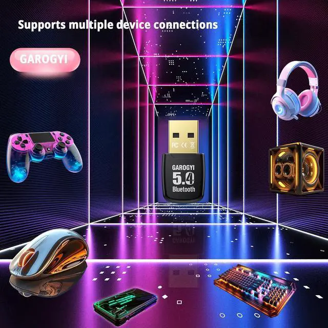 Key Features: The GAROGYI USB Bluetooth Adapter features advanced Bluetooth 5.4 technology offering faster more stable connections with minimal sound quality loss. It supports simultaneous connections to multiple devices without interference allowing seamless use of peripherals like keyboards.
