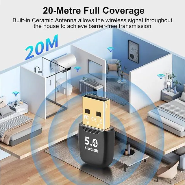 Bluetooth V 5.4: This Bluetooth adapter uses Bluetooth 5.4 +EDR technology with dual modes for Bluetooth 5.4 Low Energy (BLE). The latest technology brings you a better user experience. Compatible with Bluetooth 5.0 / 5.1 / 5.2 / 5.3.