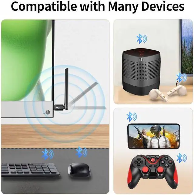 Note: Not compatible with Windows 7 or Mac OS systems. [Multiple Connections] Supports simultaneous connection of up to five Bluetooth devices. Equip your PC with Bluetooth functionality. Supports devices such as Bluetooth earphones Bluetooth speakers Bluetooth keyboards/mice Bluetooth printers Bluetooth game consoles smartphones and tablets. [Audio Transmission Support] The Bluetooth adapter supports audio transmission with low latency and AAC/SBC support.