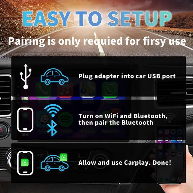 AUTO CONNECT: Turn on WiFi and Bluetooth on the phone then pair the Bluetooth. Easy to Setup and Operate.?? FUNCTIONALITYConvert your wired CarPlay/Android Auto to wireless with this plug-and-play adapter enabling seamless integration of your Phone with your vehicle's infotainment system.