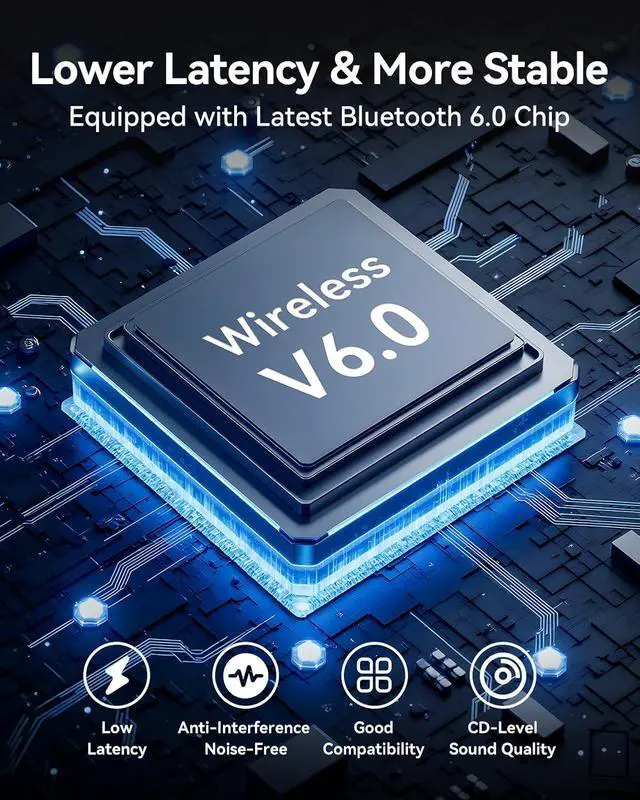 HD Audio: Equipped with the latest upgraded Bluetooth 6.0 chip the powerful Bluetooth chip can adaptively transmit low-latency high-definition audio and reduce the possibility of signal interruption and power consumption. It is suitable for movie or music playback (the Bluetooth version mainly affects connection stability and range not sound quality)