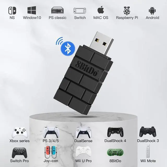 Wireless Connectivity: The 8Bitdo Wireless USB Adapter 2 allows you to connect wireless controllers to your Switch Switch OLED Windows Mac and Raspberry Pi.