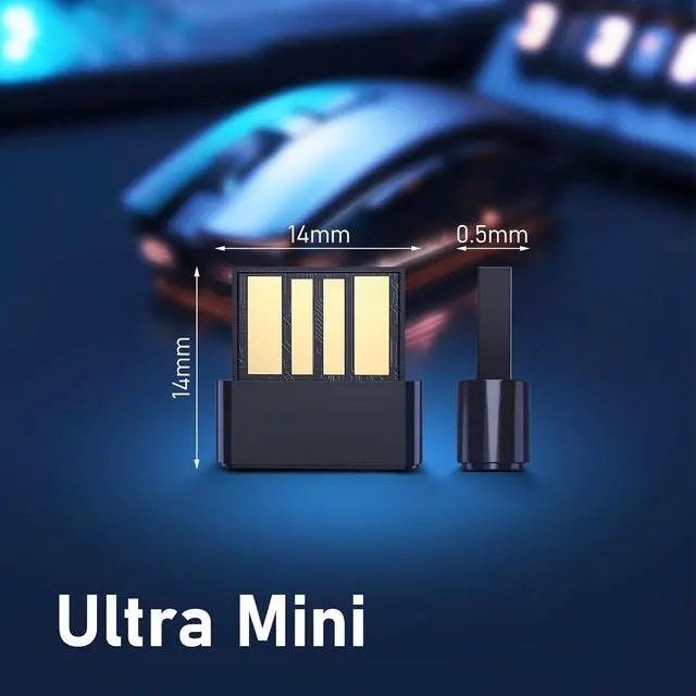 Please note that the existing internal Bluetooth function needs to be disabled to use the BU02 adapter. The adapter features a slim and compact design that seamlessly fits onto laptops or PCs. Its portability ensures that it won't block adjacent USB ports allowing for convenient use.