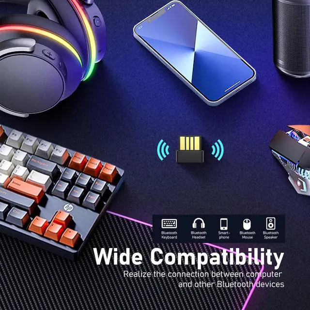 The bluetooth 5.3 adapter technology to ensure a strong and reliable connection. It can transmit data at speeds of up to 3Mbps making it perfect for fast and efficient file transfers. This adapter is compatible with a wide range of Bluetooth-enabled devices such as speakers keyboards headsets and mice. It allows for seamless wireless music streaming and easy file sharing maximizing the potential of your Bluetooth technology. For Win8 Win 8.1 Win10 Win11 the adapter is plug and play requiring no additional driver installation. However for Windows 7 a driver can be downloaded for free from our website.