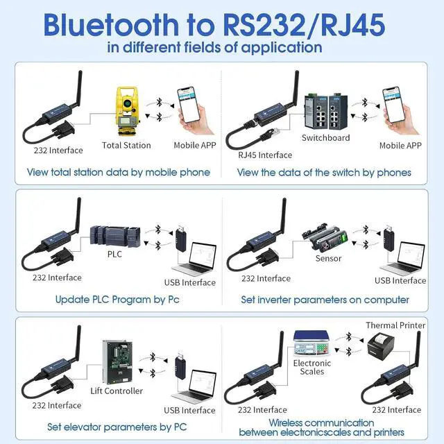 RS232 device to wirelessDX-CP26 can convert your RS232 & RJ45 interface device to wireless Bluetooth communication and can support wireless communication between PCIOS