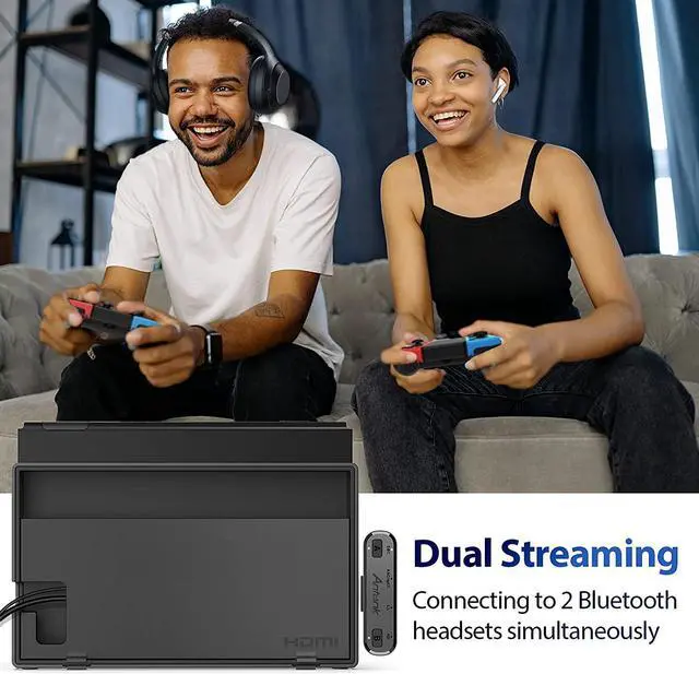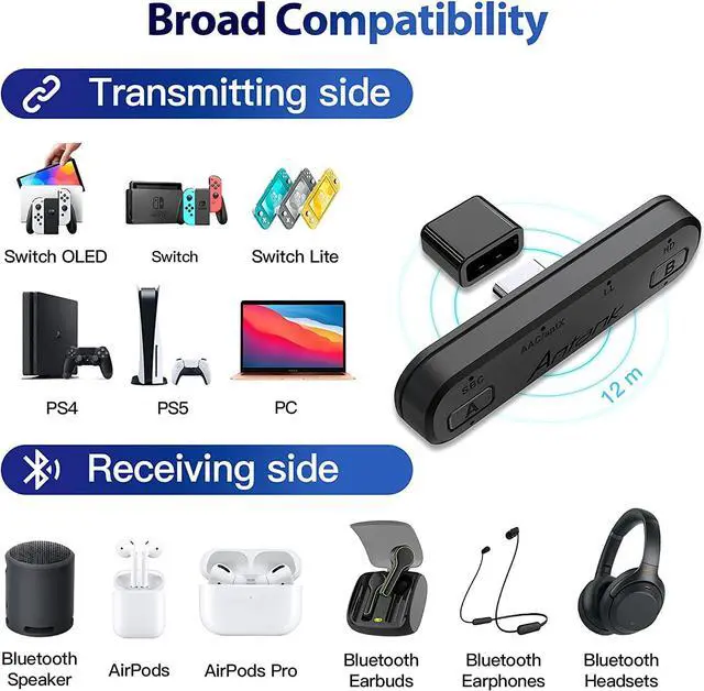?? Multiple Bluetooth protocols. Antank Bluetooth Adapter B35 can send the audio of devices via different Bluetooth protocols to corresponding Bluetooth headset. Bluetooth audio transmitting via aptX HD aptX LL aptX AAC SBC will be available. For example if you have an aptX-HD Bluetooth headset but your device does not support aptX-HD transmitting then this Bluetooth adapter can deal with it.?? Supports in-game voice chat. As we know when Switch new system is connected to a Bluetooth headset it doesn't support in-game voice chat through built-in microphone. Therefore it will be better to use a Bluetooth transmitter and a separated microphone when playing games like Fortnite.