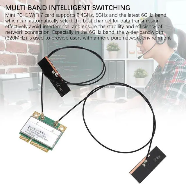 Performance: Achieve blazing-fast wireless speeds up to 8774Mbps (574Mbps on 2.4GH z 2400Mbps on 5GHz 5800Mbps on 6GHz) with this Mini PCI-E WiFi 7 card. Ideal for 4K streaming gaming and large file transfers delivering unmatched connectivity for desktop PCs and laptops.