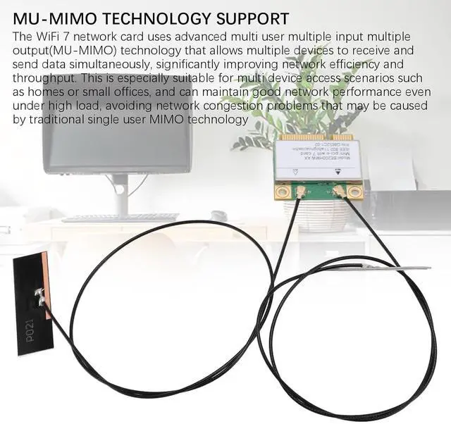 MU-MIMO Network Efficiency: Optimize multi-device performance with MU-MIMO technology allowing simultaneous data streaming to multiple devices. Ideal for homes or offices with high-density WiFi 7 network card demands.