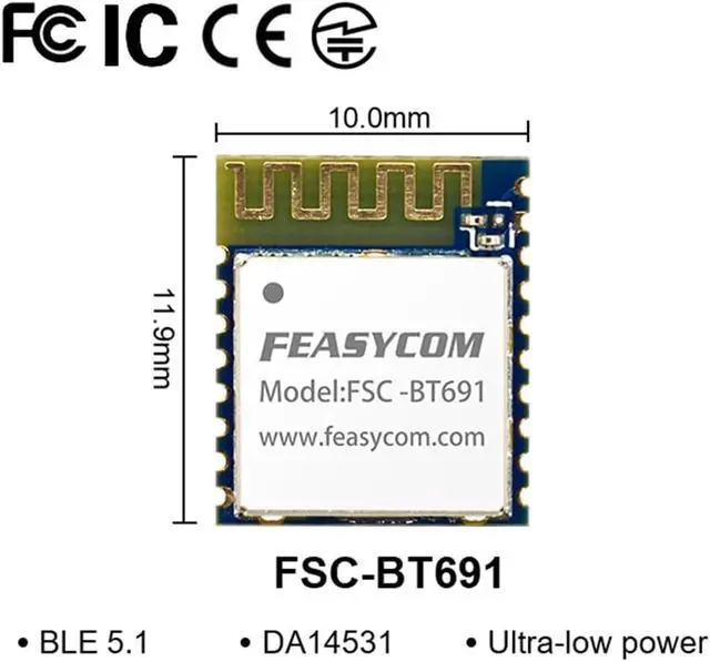 DA14531 chip Bluetooth 5.1 low energy module compatible with iOS and AndroidCoverage up to 65m (165ft) transmit