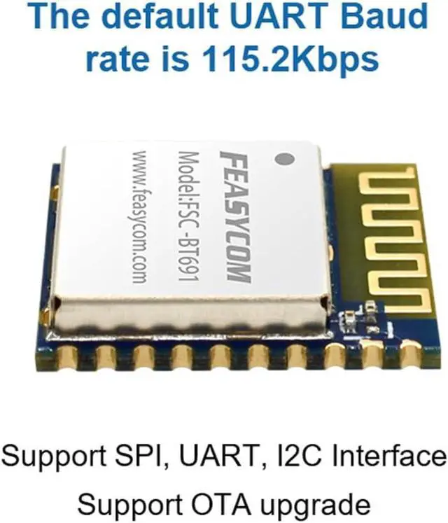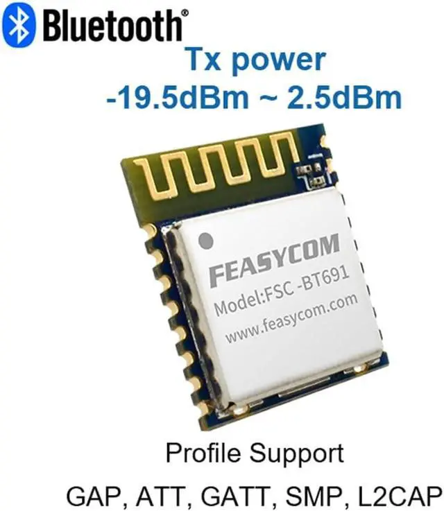 Power: 2.5 dBm 10K Byte high transmit speedIts ultra-small size is only 10mm * 11.9 mm * 2mm which provides users with ultra-high flexibility and multiple possibilities. Support communicating with the FeasyBlue app and many other Bluetooth apps