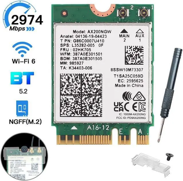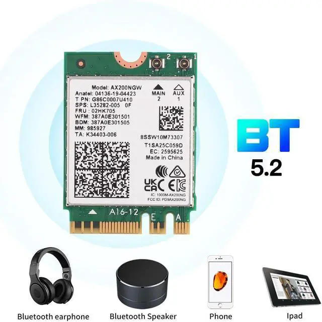 Lightning-Fast WiFi 6 Speeds Up to 2.4G bpsExperience ultra-fast wireless connectivity with the AX200 WiFi 6 PCIe card delivering speeds up to 2.4G bps on dual-band ( 2.4GH z & 5GHz). Perfect for 4K streaming competitive gaming and large file transfers with minimal lag. Bluetooth 5.2 for Seamless Device ConnectivityAX200 M. 2 wifi card upgrade to enhanced Bluetooth 5.2 supporting multiple devices like headphones controllers and peripherals simultaneously. Broad CompatibilityAX200 wifi card compatible with Windows 10/11 (64-bit) ideal for upgrading from older WiFi cards (AC 9260 8260 8265 7265 etc. ).