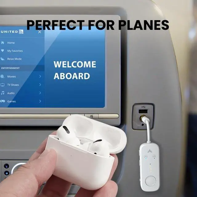 FOR In-Flight Wireless ListeningFor travelers who want to use Bluetooth headphones with airplane seat 3.5 mm audio jacks without cables. Designed specifically for airplanes seatback screens and other 3.5 mm audio-out sources not phones or instruments. Stable Audio For Movies & TVUses a Qualcomm Bluetooth platform for reliable interference-resistant audio during long flights. When paired with aptX Adaptive headphones video and dialogue stay well aligned for movies and TV shows. Dual Headphones One SourceConnect two Bluetooth headphones at the same time to share in-flight movies or music. Audio stays synchronized between both listeners making it ideal for couples or family travel.