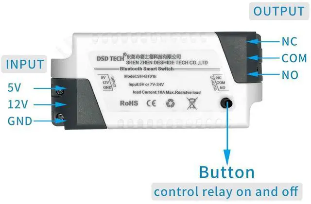 Customer Support: DSD TECH provides permanent technical support and 1 year product replacement service for this bluetooth relay. All questions will be answered within 1 working day.