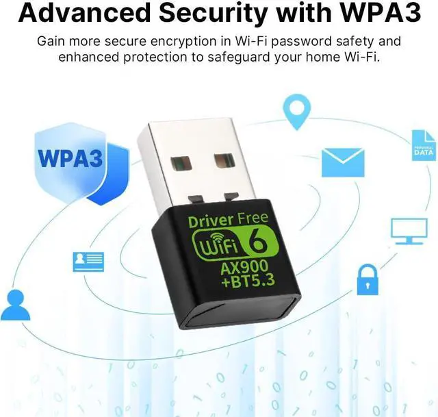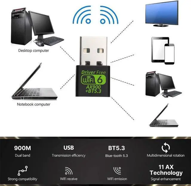 Ultra-Fast WiFi 6 & Dual-Band Connectivity - Experience blazing-fast speeds up to 900Mbps with WiFi 6 ( 802.11 ax) technology. The dual-band ( 2.4GH z + 5GHz) design ensures seamless 4K streaming lag-free gaming and quick downloads while maintaining compatibility with older routers ( 802.11 a/b/g/n/ac)Advanced Bluetooth 5.3 Technology - Enjoy enhanced wireless connectivity with Bluetooth 5.3 featuring lower power consumption and superior anti-interference performance. Perfect for connecting headphones keyboards mice and game controllers with extended range and stable connectionsHigh-Performance RTL8851BU Chipset - Powered by the reliable RTL8851BU chip this adapter delivers energy-efficient stable performance with optimized wireless reception.